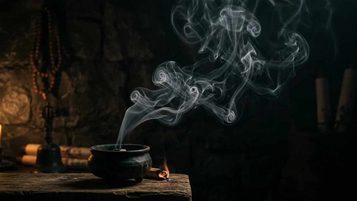 Incense smoke symbolizes mindfulness, purification, and spiritual focus.
